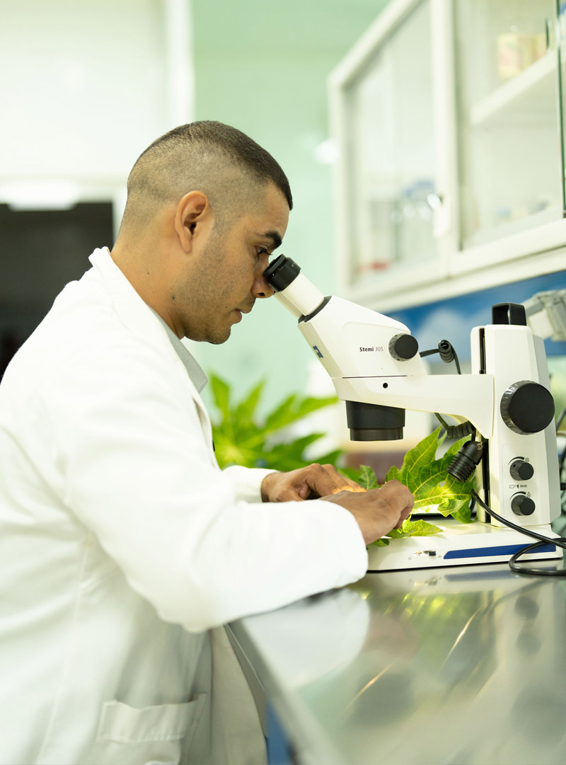 Nuestros productos nacen de la ciencia, el respeto por la vida y un compromiso firme con el planeta. Contamos con el respaldo de un centro de investigación que garantiza la calidad de los insumos y ofrece servicios de diagnóstico y monitoreo de suelos y cultivos.