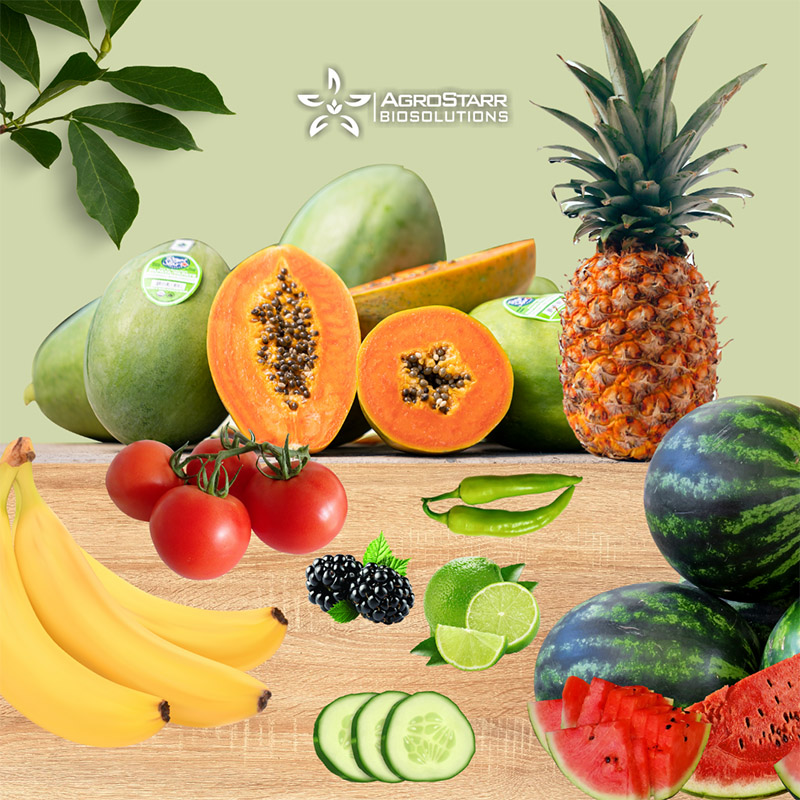 - Frutales: Papaya, Limón, Banano, Zarzamora, Piña